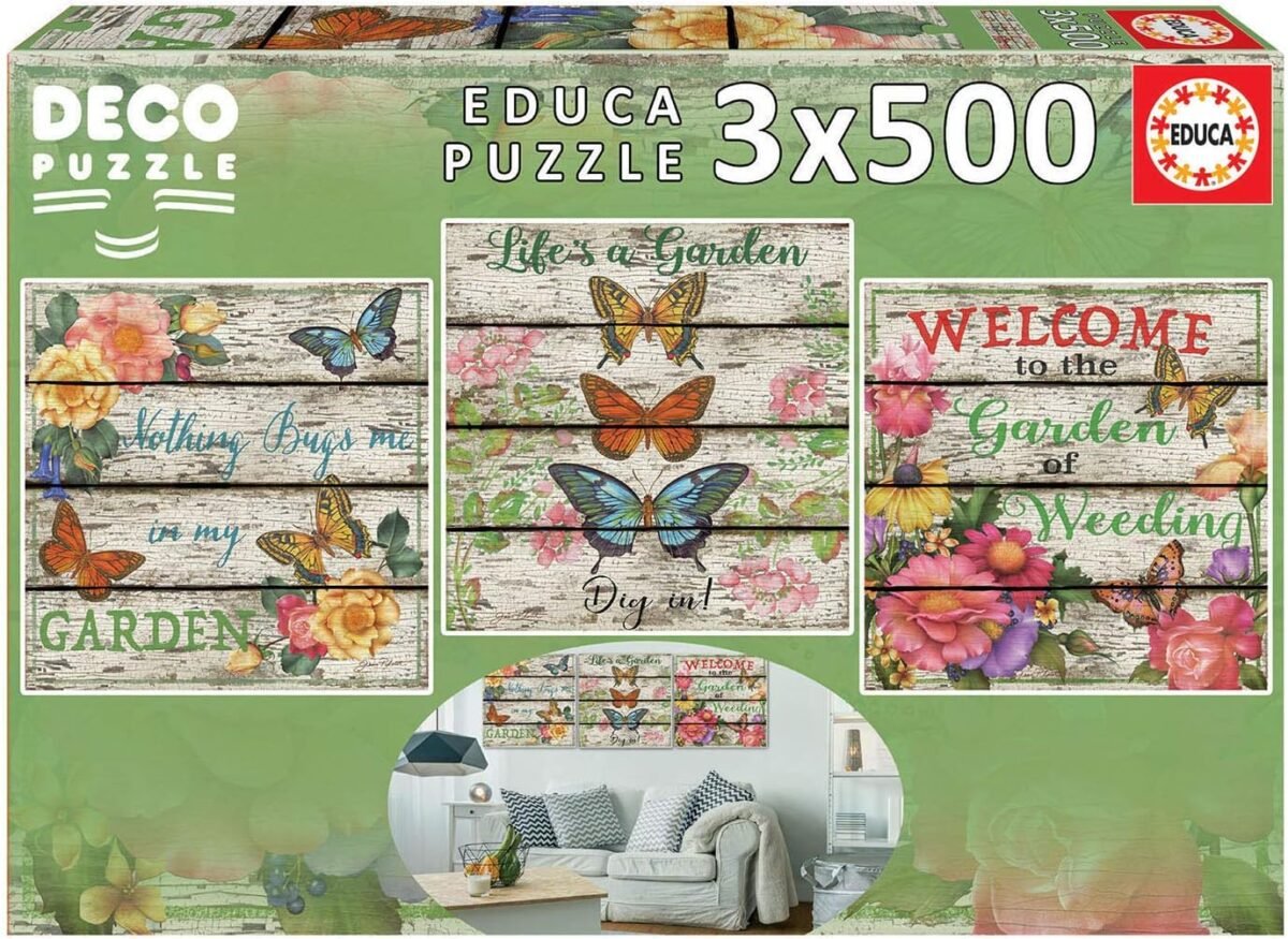 Educa - Serie Deco, 3 Puzzles de 500 Piezas, Jardín Campestre (17965)