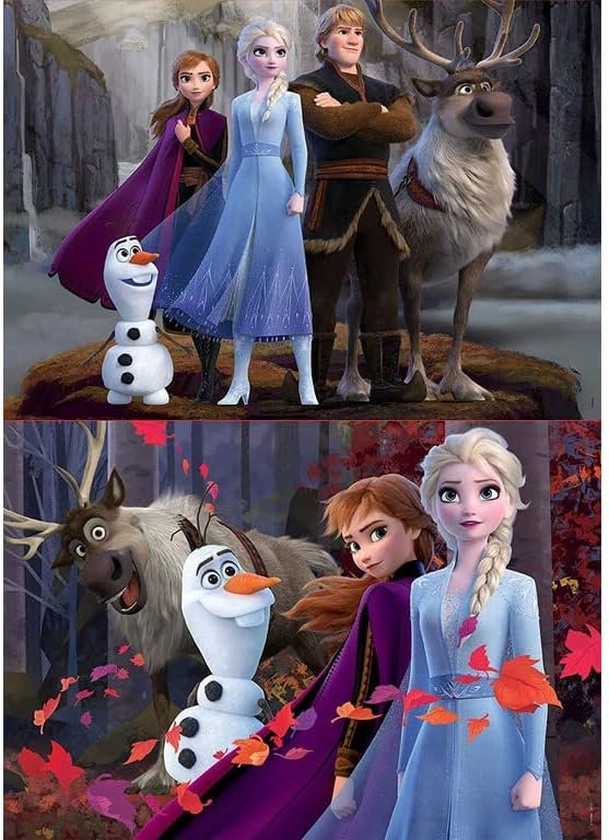 La nueva aventura de Elsa y Anna cobra vida en este set doble con 2 puzzles de 100 piezas. Bosques encantados, hielo, magia y personajes inolvidables se combinan en escenas llenas de emoción. Para quienes siguen creyendo en el poder de los lazos familiares… y de los copos de cartón.