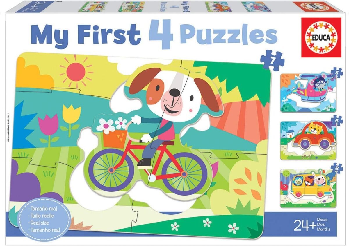 - My First Puzzles de Educa es una colección de puzzles progresivos con imágenes sencillas, adecuadas para niñas y niños de 24 meses.